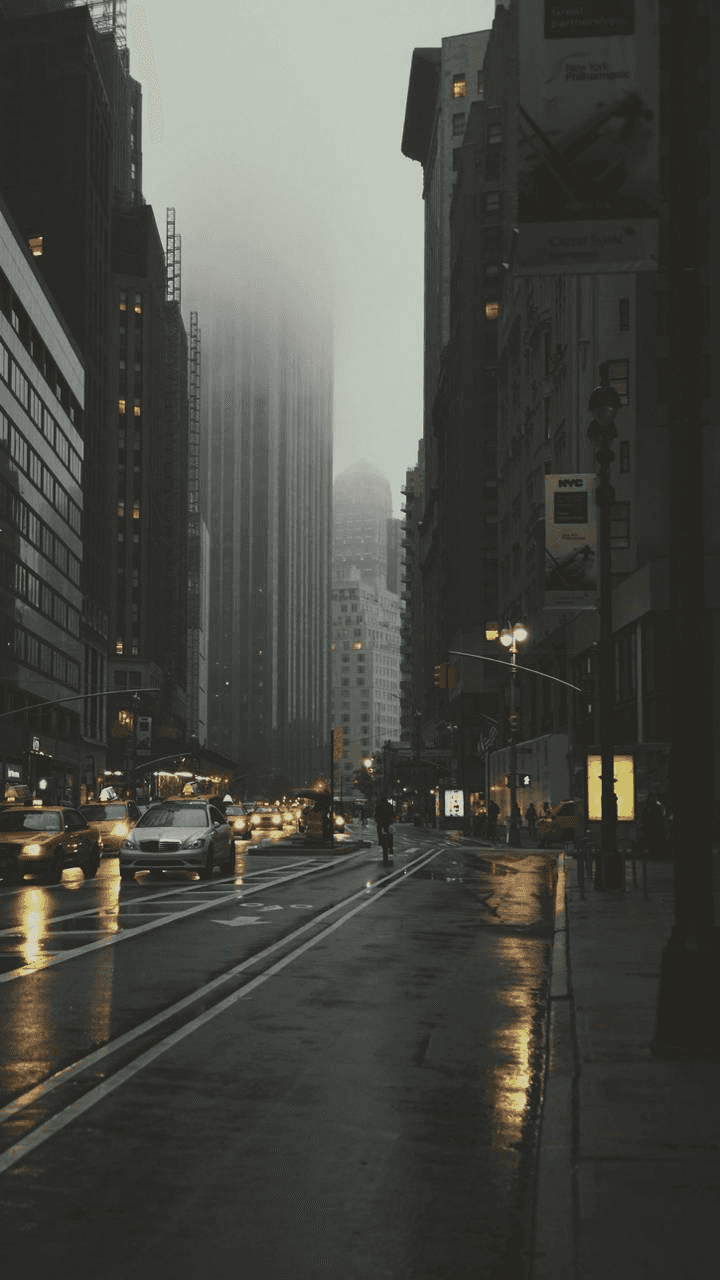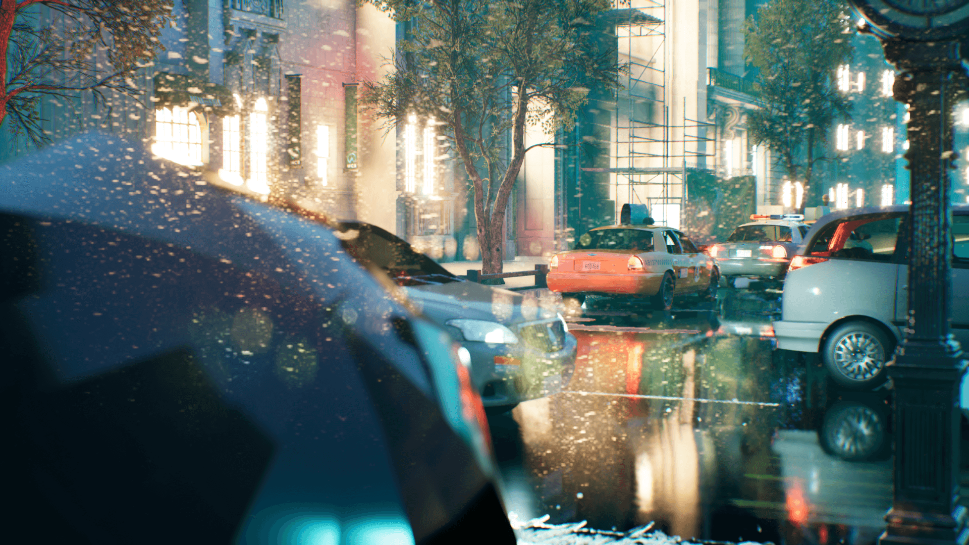 I adjusted the exposure, fog, and refraction to balance the composition, keeping the scene atmospheric while highlighting the midground cars and reflective streets.