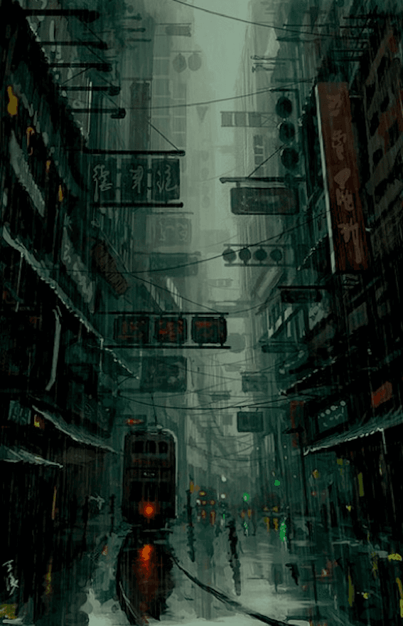 My first step was to introduce overall ambient lighting and atmospheric fog to establish the scene's general tone and mood. This helped set the base color palette and enhanced the rainy, subdued ambiance of the environment.